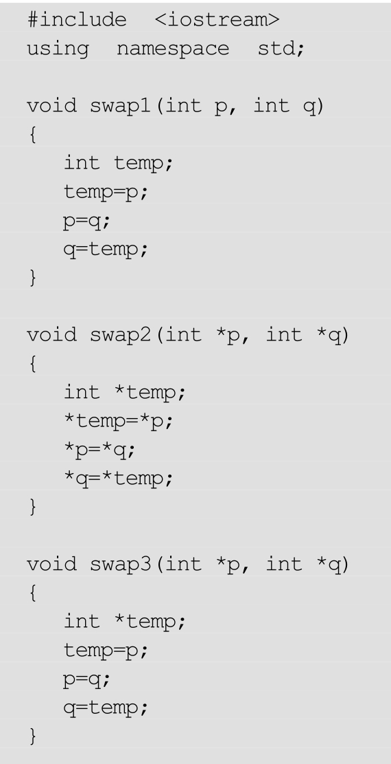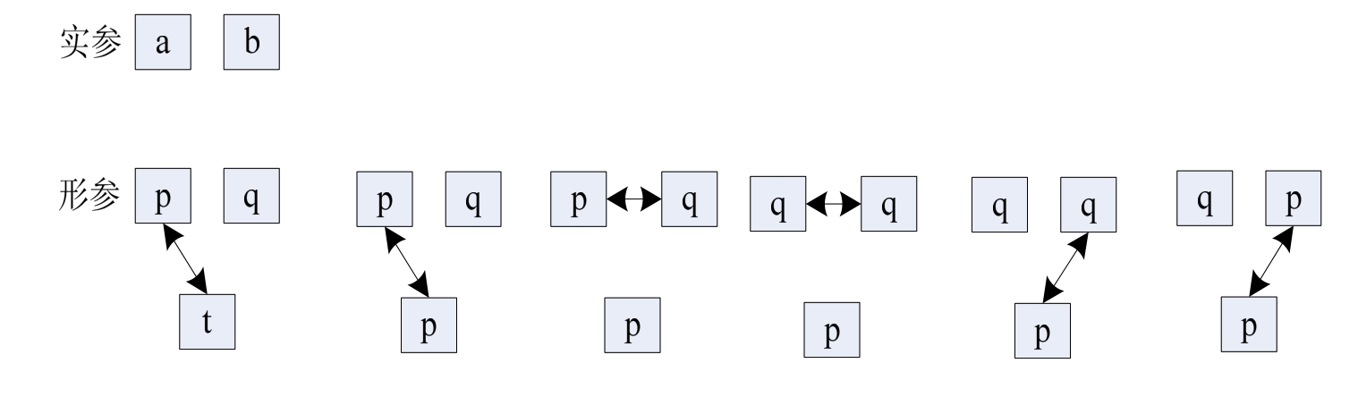 swap3传的是一个地址进去,在函数体内的形参*p、*q是指向实际参数a、地址的两个指针。这里要注意: