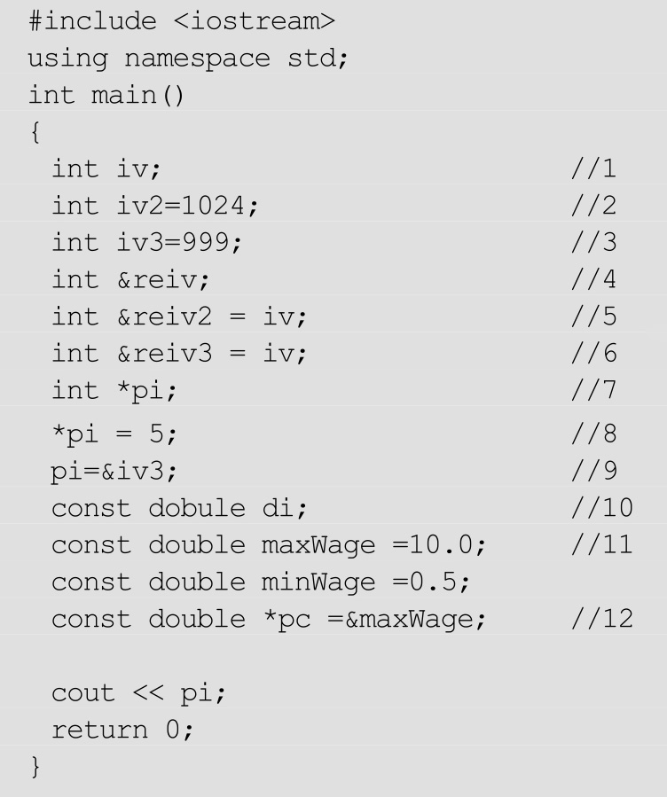 ● 5正确,声明了一个引用reiv2,同时初始化了,也就是reiv2是iv的别名。