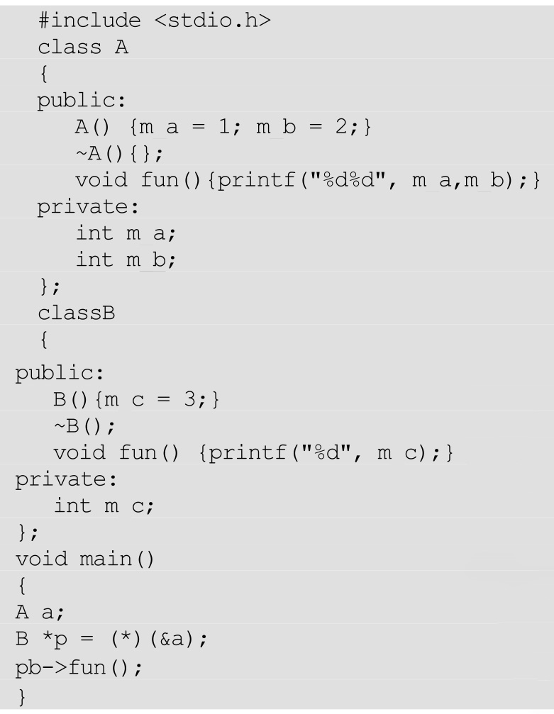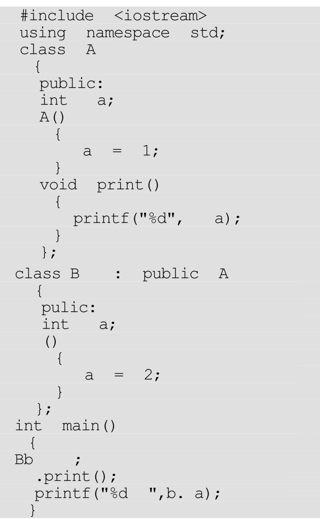 解析 :B类中的_a把A类中_a的覆盖掉了。在构造B类时,先调用A类的构造函数。所以A类的_a是1,而B类的_a是2。