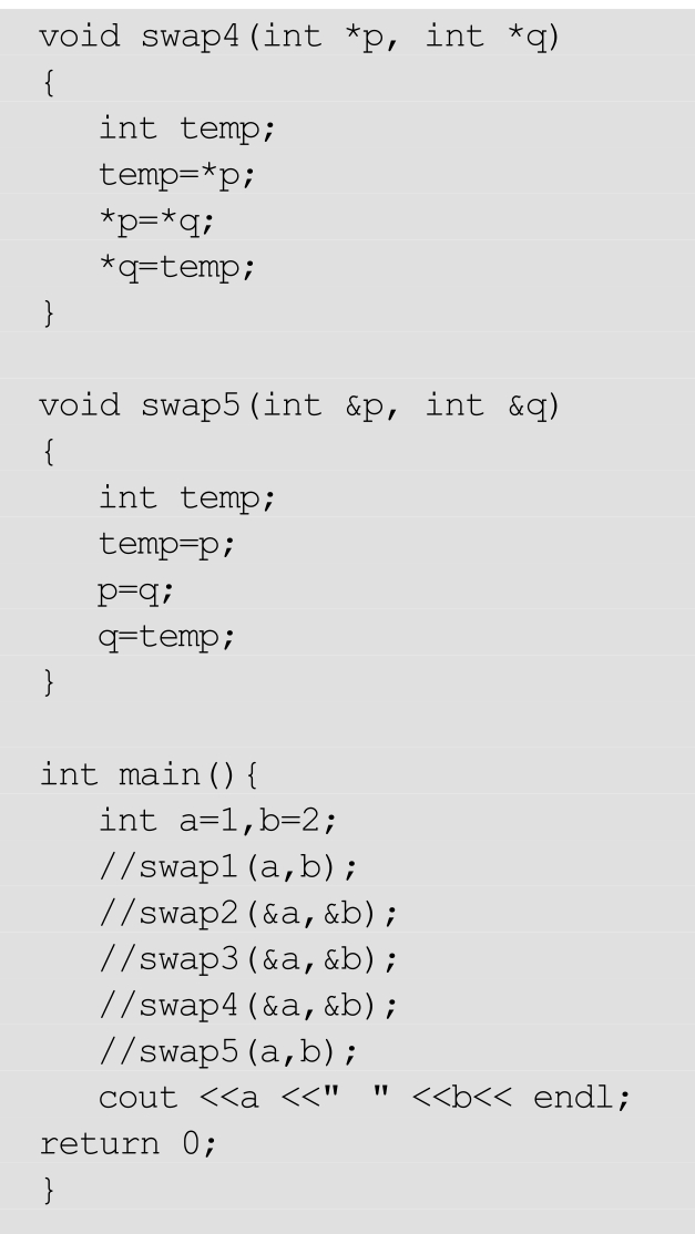 swap2传的是一个地址进去,在函数体内的形参*p、*q是指向实际参数a、地址的两个指针。