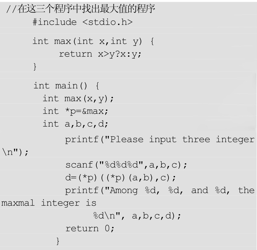就像数组名是指向数组第一个元素的常指针一样,函数名也是指向函数的常指针。可以声明一个指向函数的指针变量,并且用这个指针来调用其他函数——只要这个函数和你的函数指针在签名、返回、参数值方面一致即可。