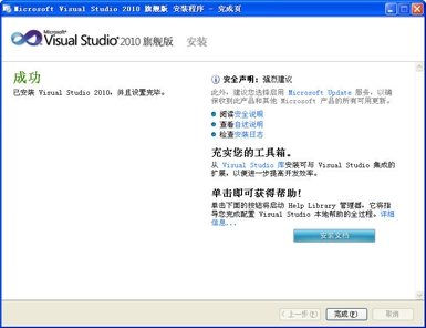 图1-6 Visual Studio 2010安装完成