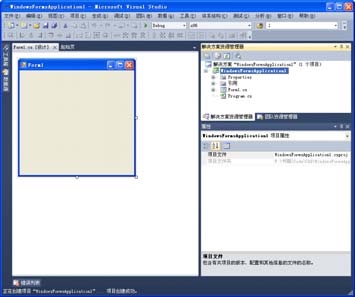 (3)单击“新项目”创建项目,如图1-9所示。输入项目名称“1.1”,选择项目保存位置,单击“确定”按钮,将创建名称为“1.1”的解决方案,解决方案包含一个名称为“1.1”的项目,如图1-10所示。Visual Studio 2010将自动创建一个winform界面。