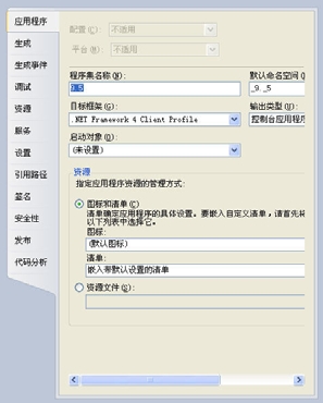 选择“应用程序”选项卡可以设置程序集名称、命名空间名称、输出类型和Framwork版本。选择“运行”选项卡可以设置编译模式、平台、警告等级、输出路径等。选择“错误”选项卡可以设置编译模式、平台、启动操作、启动选项、启用调试器等。