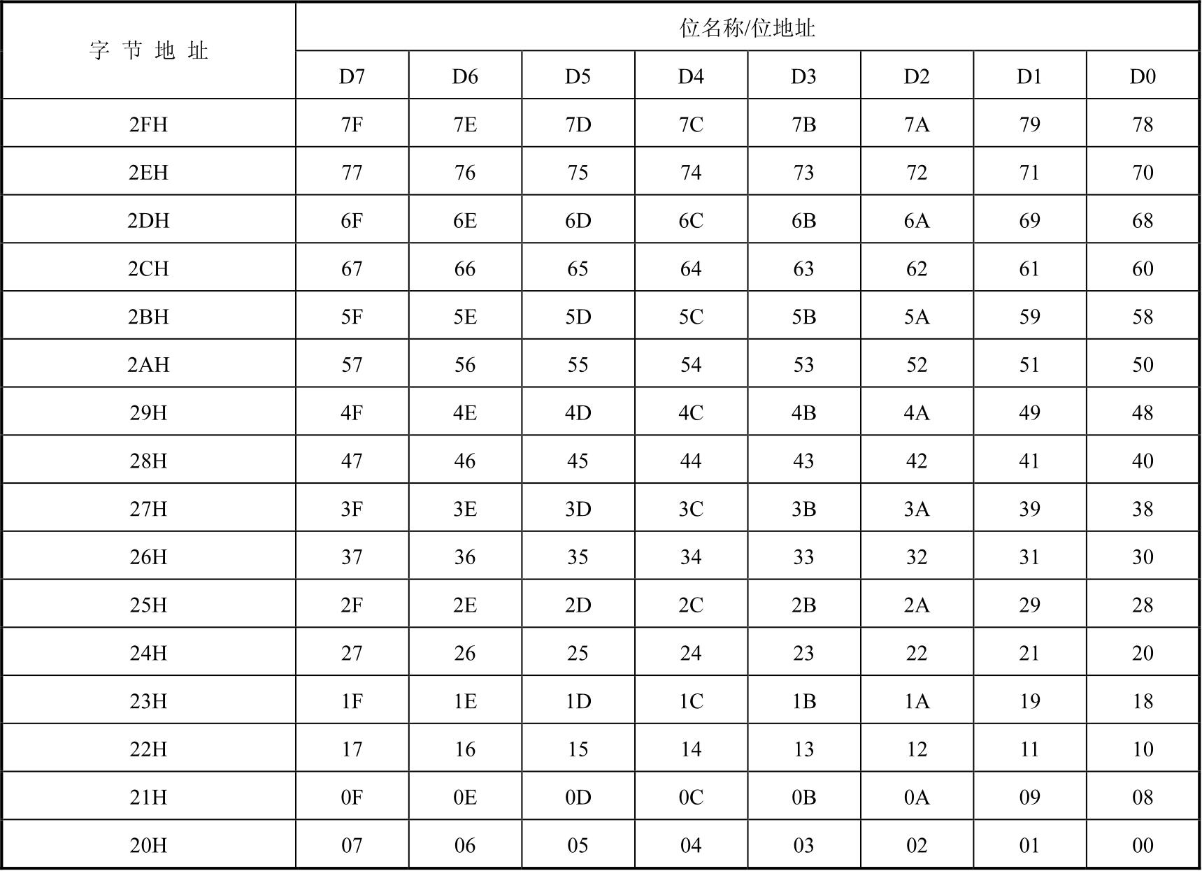 表2-3 片内RAM位寻址区的位地址