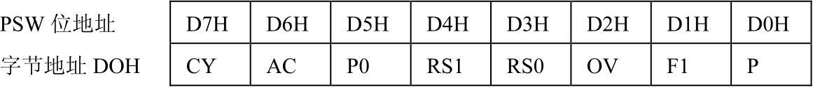 ③程序状态字(Program Status Word,PSW)。程序状态字是一个8位寄存器,它用于存放程序运行中的各种状态信息。其中有些位的状态是根据程序执行结果,由硬件自动设置的,而有些位的状态则由软件方法设定。PSW的位状态可以用专门指令进行测试,也可以用指令读出。一些条件转移指令将根据PSW某些位的状态进行程序转移。PSW除PSW.1位保留未用外,其余各位的定义及使用如下: