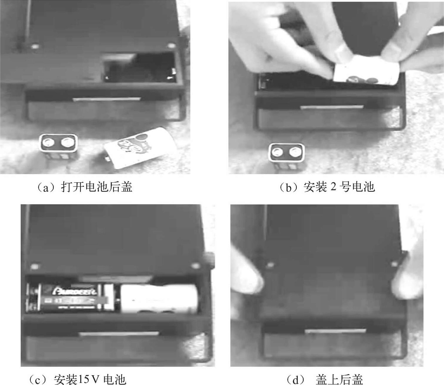 万用表内部均需要安装电池。在MF47型万用表背面的电池盒中,左边是低压电池仓,装入一枚1.5V的2号电池;右边是高压电池仓,装入一枚15V的层叠电池,如图1-32所示。现在有的厂家生产的MF47型万用表,R×10k挡使用的是9V层叠电池。
