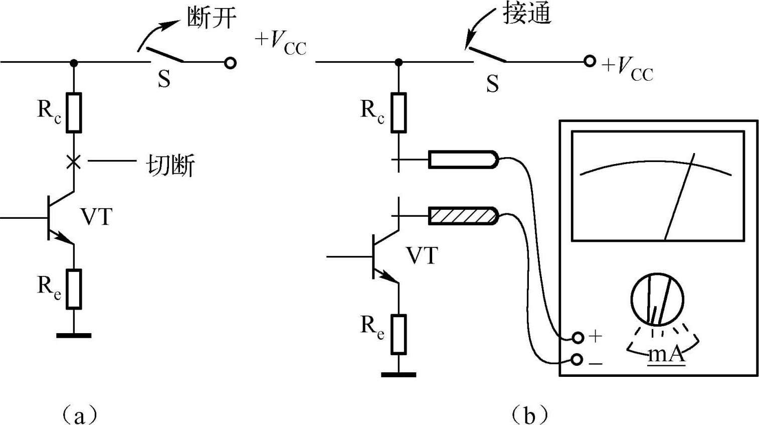 (2)注意表笔正、负极性。红表笔接电路中电流来的方向(或高电位端),黑表笔接电路电流流出的方向(或低电位端),不可接反。若表笔正负极性接反了,表头指针向反方向偏转,后果是容易撞弯指针。如果事先不知道极性,可以采用试测法。