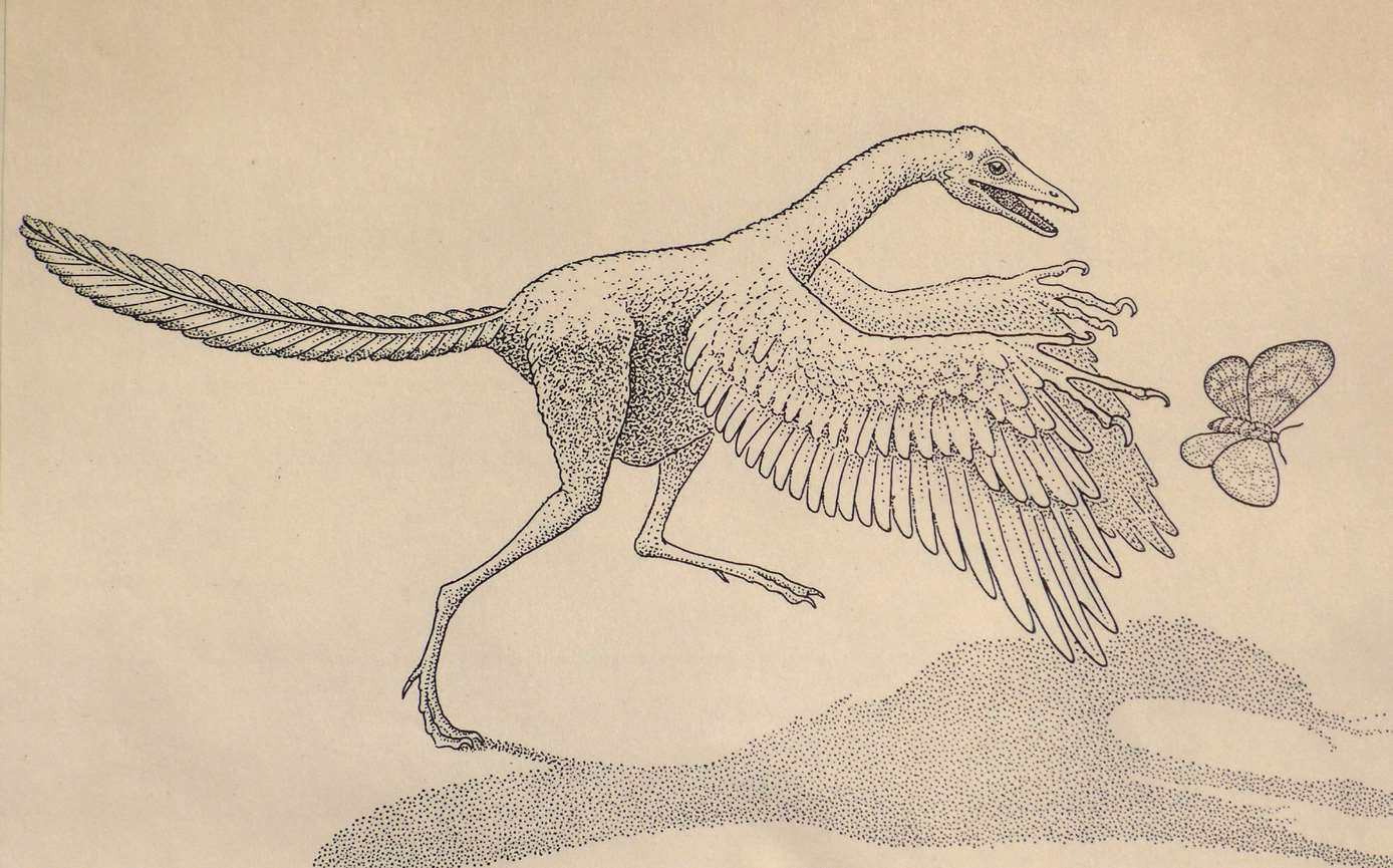 ▲鸟类起源于带羽毛的恐龙