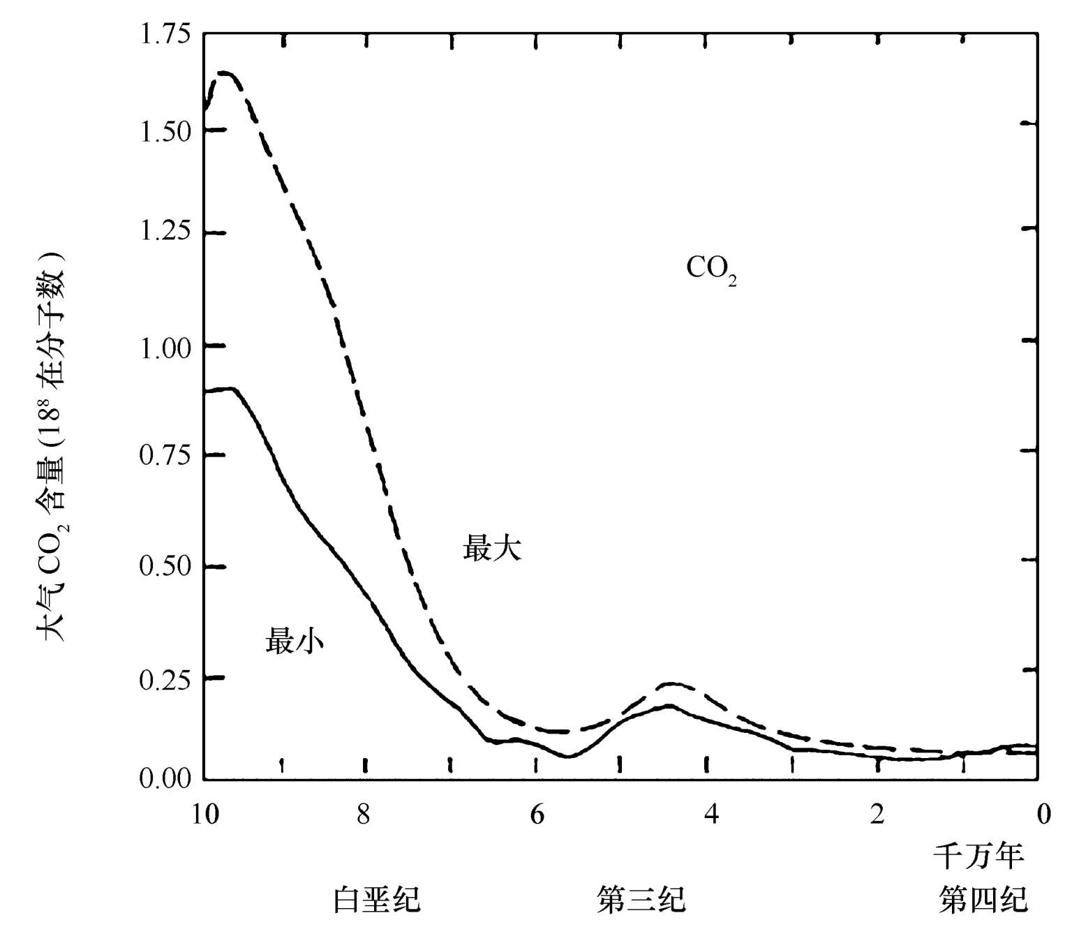 图4.3 1亿年来大气中CO 2 含量变化模式