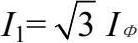 在三相交流负载的三角形(△)连接方式电路中,三相输电线(相线)各线中流过的电流称为线电流,用符号 I 1 表示。其计算公式为: