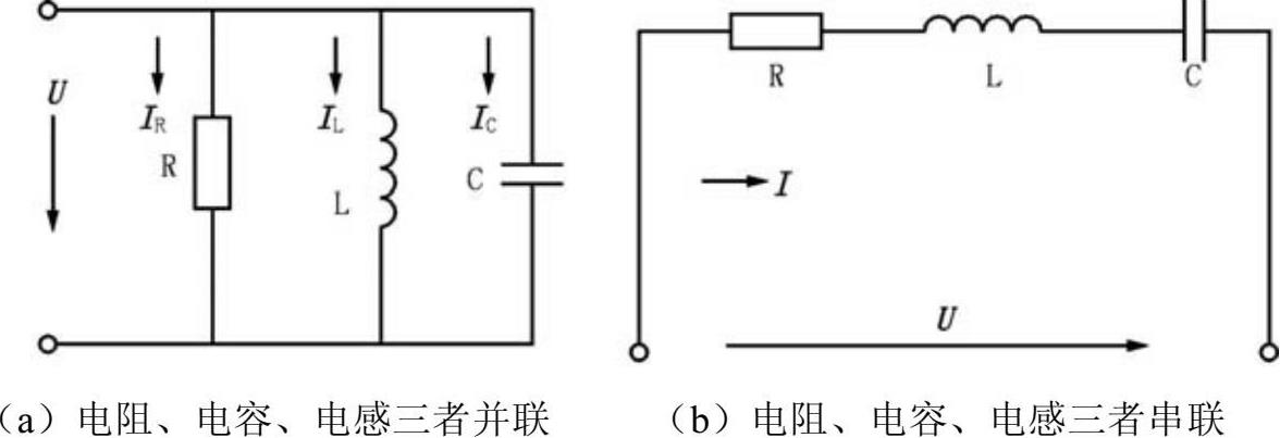 图2-3 电阻与电感、电容三者并联或三者串联电路连接方式