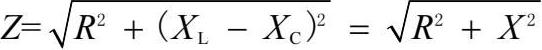 电阻与电感、电容三者串联电路的连接方式如图2-3(b)所示。这种电路的阻抗可采用以下公式计算得到: