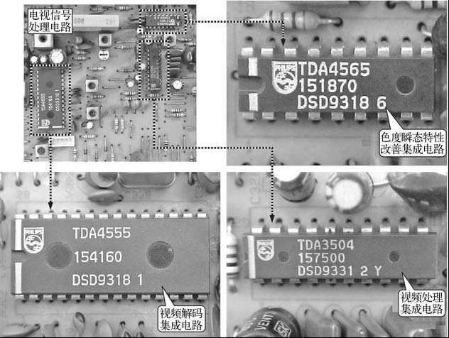 电视信号处理电路可以将中频电路输出的视频电视信号解调成R、G、B三基色信号,或3个色差信号和1个亮度信号送给显像管进行放大处理。图2-12为典型多片机的电视信号处理电路。
