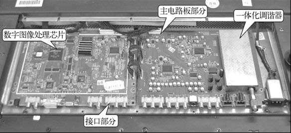 主电路板是等离子电视机中用来处理音、视频信号及对整机进行控制的电路板,一体化调谐器电路、音频信号处理电路、数字视频信号处理电路、系统控制电路等都安装在主电路板上。图2-49为典型等离子电视机中的主电路板部分。
