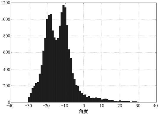图4.10 两个噪声源(输出脉冲部分重迭)时获得的角度统计直方图