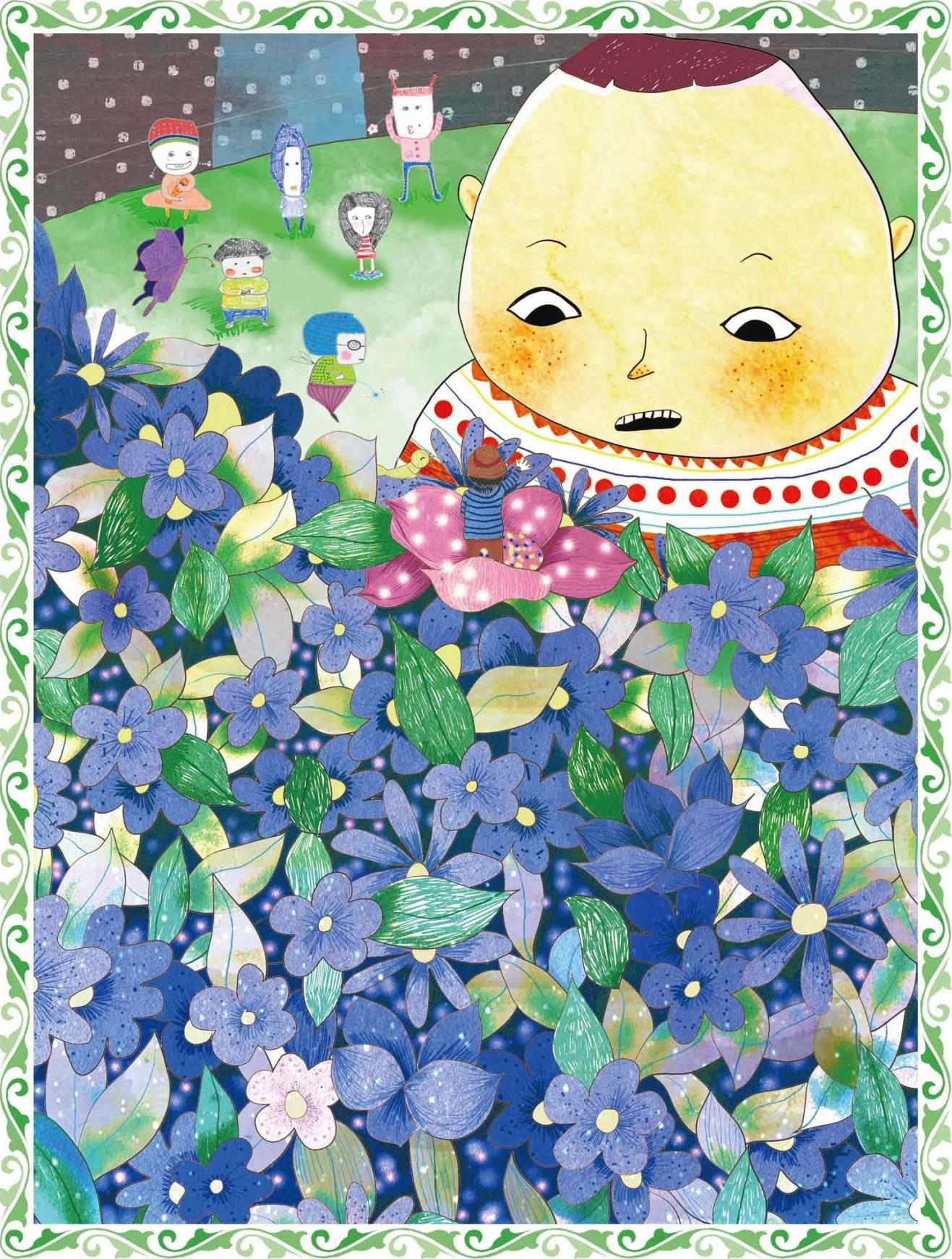只有一个角落仍笼罩在严冬之中,一个小男孩站在那儿。因为他个头太小,爬不上树。