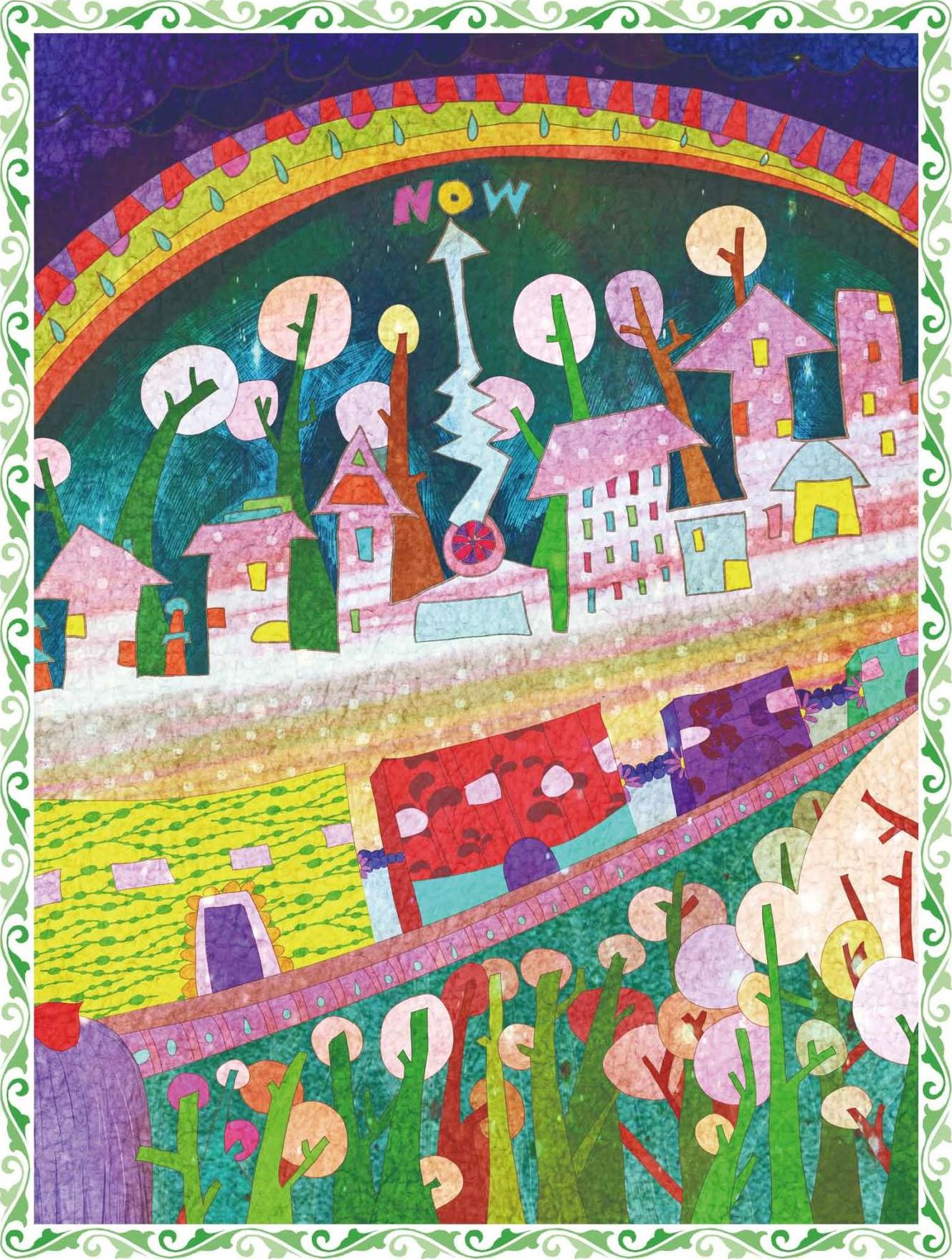 当最后一勺冰淇淋在爱玛嘴里融化时,她把童话书看完了,火车也停了。只听很多人在喊:“心想事城到了!下车了!”