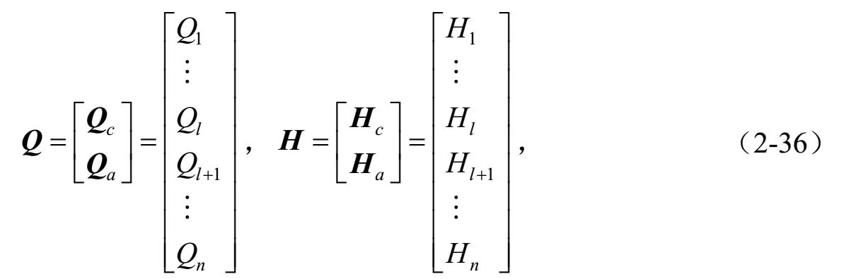 即 Q c 和 H c 矩阵分别描述连支中的流量和压降, Q a 和 H a 矩阵分别描述树枝中的流量和压降,但并不包括执行机构的分支。