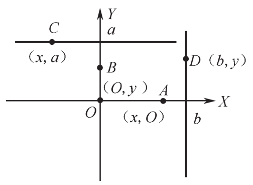 ●平行于Y轴的直线上点坐标(b,y),如图2-3的点D。