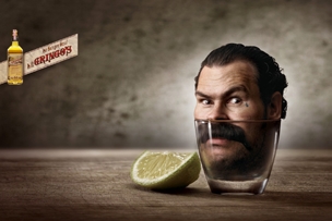 根据广告创意的具体内容,来指定并实施广告的表现手法。为了使“创意”这个抽象化的概念能够直观地反映设计对象的综合特质,我们将各类视觉要素及相应的表现手段搭配在一起来进行表现。广告的表现手法是多种多样的,比如夸张、倒置和留白手法等。如左图所示,设计者借用夸张的人物表情来表现商品的独特口感,同时形成趣味性的画面效果。