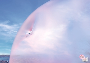 在客观存在的事物的基础上,将该事物的某一特质进行有目的地放大或缩小,从而加强对受众视觉与心理的影响力。我们通过夸张型广告来增强产品特色的表现力,并同时给消费者带来深刻的视觉印象。如右图所示,设计者通过体积非常庞大的泡泡来营造视觉冲击感,夸张的表现形式可以使观者对商品本身产生感知兴趣。