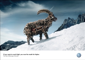 个性是一个人精神面貌的整体体现,即这个人在思想、性格和意志等心理特征方面具有一定的倾向性,通过个性可以判定一个人的内在价值。在左图所示的汽车广告中,设计者运用机械零件组合成的山羊形象,带给受众个性独特的视觉感受。