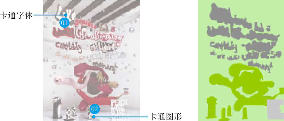 ① 凭借卡通字体充满趣味感的外形特质,以此营造出欢悦、轻松的版式效果。