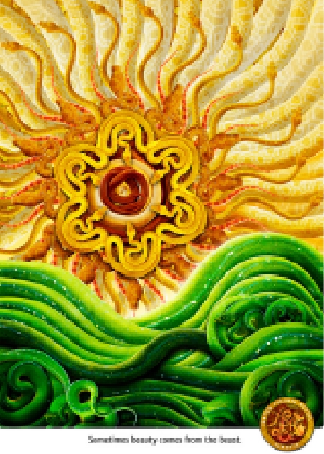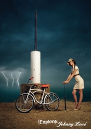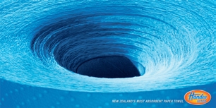 平面构成中的体元素是指画面中的三维空间,即强化物象的立体感,使其带动观者的视觉神经,从而感受到画面的张力。如右图所示,设计者借助漩涡在视觉上产生的立体感,有效地增强了广告画面的空间表现力。