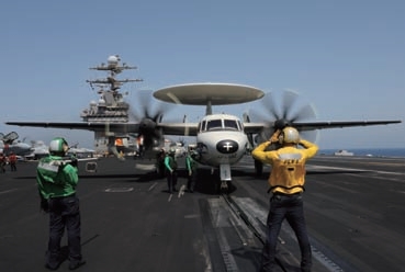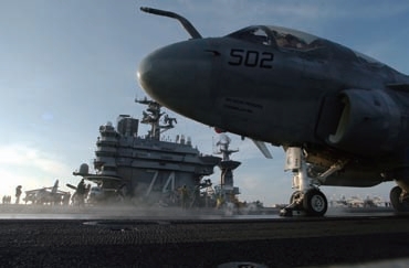 EA-6B电子战飞机在“斯坦尼斯”号航母上准备弹射