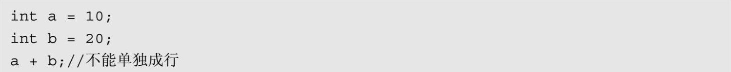 在程序代码内部,每个表达式都有自己对应的数据类型,例如,“int n = 10,int m = 10;”都是带着数据类型的表达式,在实际的程序代码中,大部分表达式不能单独成为代码中的一行,否则程序会提示语法错误,例如: