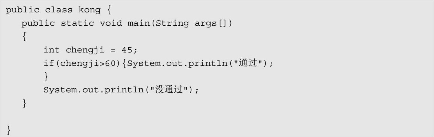 在上面的代码中,if语句的条件不满足,没有执行if语句中的内容,而在下面的代码中,其条件满足了if语句,代码【光盘:源代码/第5章/dan】如下: