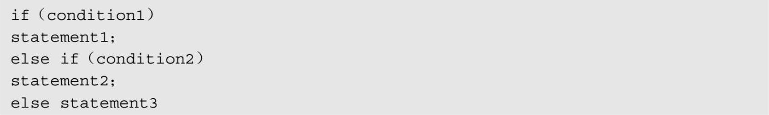 首先它会判断第一个条件condition1,当为true时,则执行statement1;当condition1为false时,则判断condition2。当condition2为true时,执行statement2;当condition2为false时,则执行statement3。