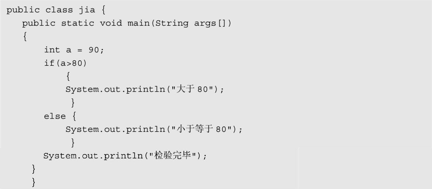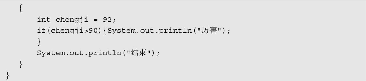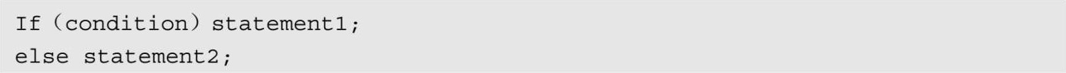 if语句控制由保留字符if、条件语句以及位于后面的语句组成,条件语句通常是一个布尔表达式,结果为true或false。若条件为true,则执行语句并继续处理其后的下一条语句;若条件为false,则跳过该语句继续处理紧跟着的if语句的下一条语句。
