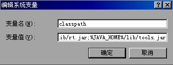 第2步:再新建一个变量名为classpath、变量值为“.;%JAVA_HOME%/lib/rt.jar;%JAVA_HOME%/lib/tools.jar”的系统变量,确定后找到PATH的变量,双击或单击编辑,在变量值最前面加上“%JAVA_HOME%/bin;”,如图1-16所示。