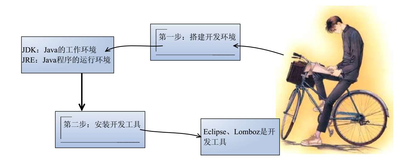 KNOWALL:“是的。简单地说,JDK是Java的工作环境,JRE是Java程序的运行环境,IDE是集成开发平台,例如Eclipse、Lomboz等,具体如图1-3所示。”