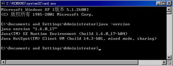 第3步:再次依次单击【开始】→【运行】,在运行框中输入“cmd”并按下回车键,在打开的CMD窗口中输入java –version,如果显示如图1-17所示的提示信息,则说明安装成功。