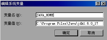 注意: 上述变量设置中,是按照笔者的安装路径设置的,笔者安装JDK的路径是C:\Program Files\Java\jdk1.6.0_17。