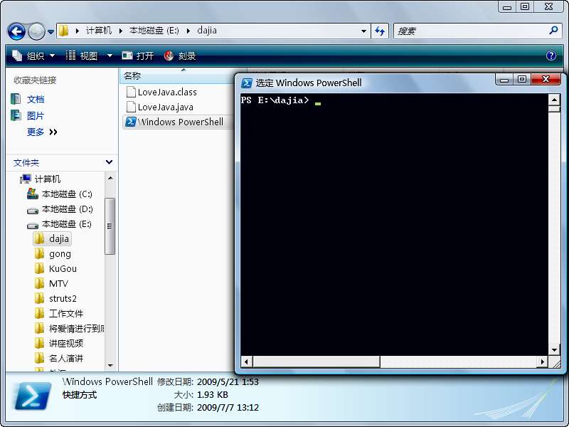 提示: 在上面的操作中,使用DOS命令打开文件夹很烦琐,用户可以将快捷方式复制到需要打开的文件夹中。其具体操作是用户在C盘搜索Windows PowerShell程序,如图1-24所示。