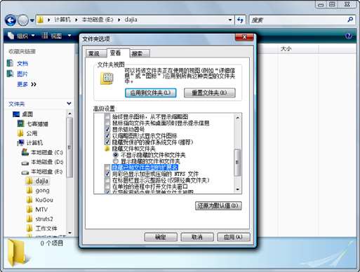 (2)单击“查看”选项卡,在高级设置列表中取消选择