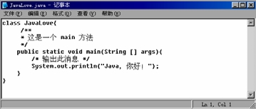 当安装和配置好JDK后,开始编写JDK程序,测试Java的环境是否正确。