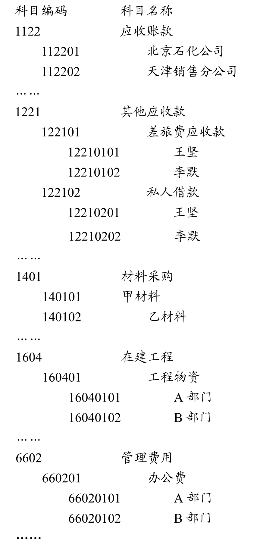 ● 科目编码。科目编码就是按科目编码方案对每一科目进行编码定义。对科目进行编码能够反映上下级会计科目间的逻辑关系;便于计算机将会计科目编码作为数据处理的关键字进行检索、分类及汇总;减少输入工作量,提高输入速度;促进会计核算的规范化和标准化。设置会计科目编码时,应注意一级会计科目编码要符合会计制度的统一要求,明细科目编码要满足建账时设定的编码规则。