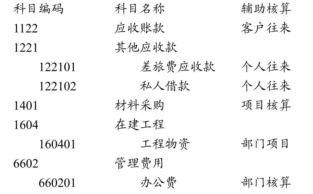 一般面言,收入或费用类科目可设置部门辅助核算。日常运营中当收入或费用发生时,系统会要求实时确认收入或费用的部门归属,记账时同时登记总账、明细账和部门辅助账。其他应收款可设为个人往来核算,用于详细记录内部职工的借款情况;与客户的往来科目如应收账款、应收票据、预收账款可设成客户往来核算;应付账款、应付票据、预付账款可设成供应商往来核算;在建工程及收入成本类科目可设成项目核算,用于按项目归集收入或费用。