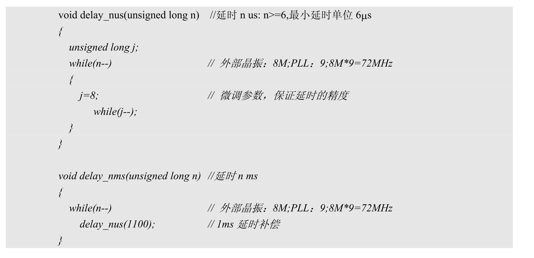 头文件HelloRobot.h中定义了两个延时函数:void delay_nms(unsigned int i)与void delay_nus(unsigned int i)。