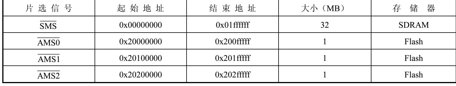 目标板外部存储空间包括SDRAM和Flash,地址范围如表4.9所示。
