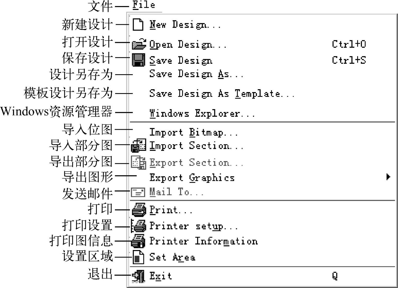 【File(文件)】 包括新建、保存、导入、导出、打印等操作,如图2-3所示,快捷键为“Alt+F”。