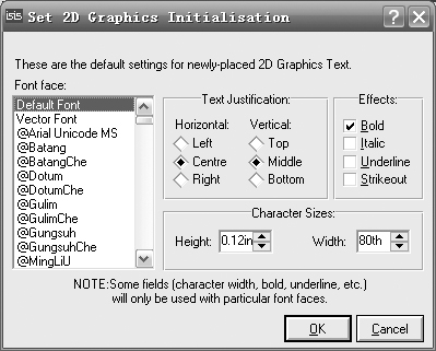 放置字符文字按钮(2D Graphics Text Mode):用于插入各种文字说明。