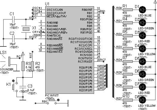 连线的网络标号(Wire Label Mode):在绘制电路图时,使用网络标号可使连线简单化。例如,在从AT89C51单片机的P1.0和二极管的阳极处画出一条短线,并标注相同的网络标号,就说明AT89C51单片机的P1.0和二极管的阳极已经连接在一起,不用再画一条线将它们连起来。