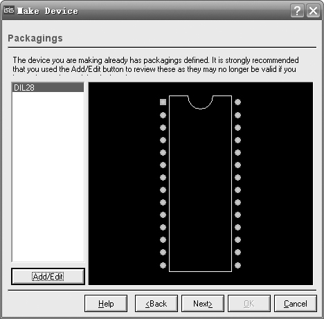 用右键选中已编辑好的元件(注意,包括隐藏的引脚),执行菜单命令“Library”→“Make Device…或单击