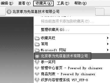 (3)收藏北京孝为先网站,关闭浏览器。再次打开浏览器,并从“收藏夹”中打开北京孝为先网站。